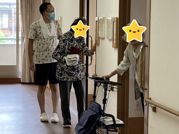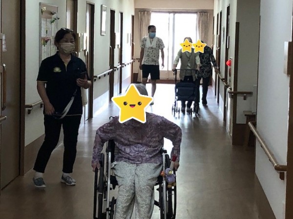 避難訓練のアナウンスをすると皆様居室から出てきてホールに避難開始!