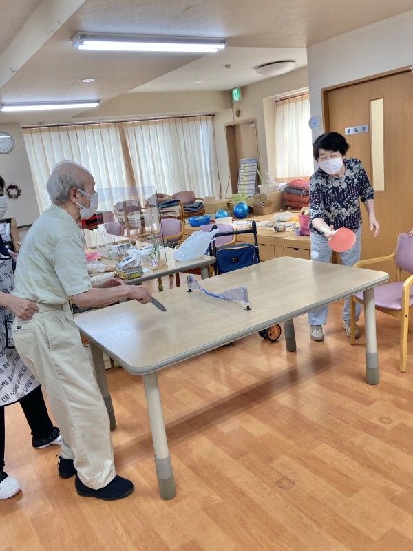 事業所へ戻り、冷たいドリンクを飲んで休憩した後、テーブル卓球で皆さんと楽しみました。