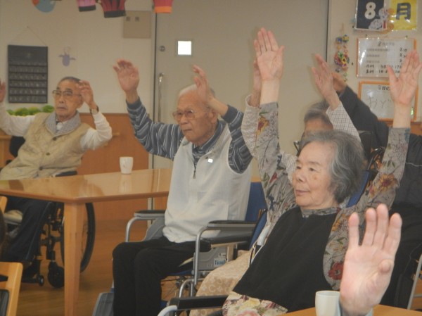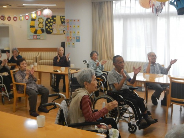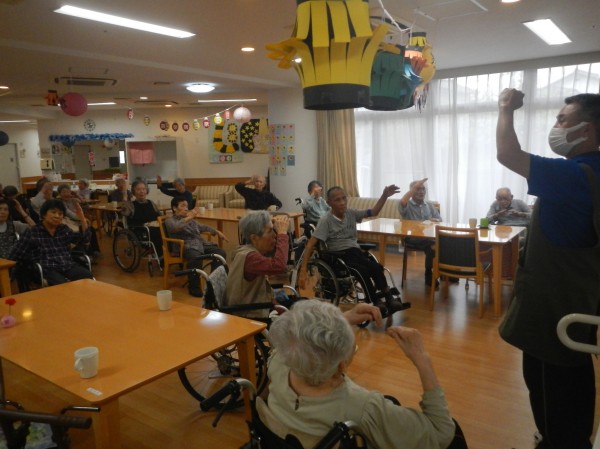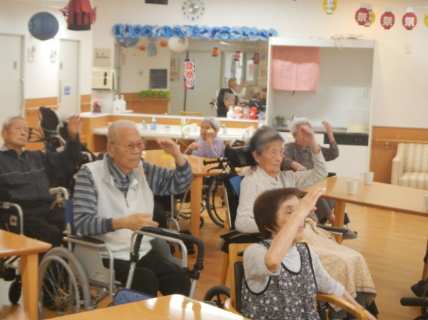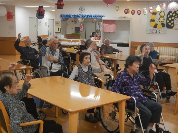 しかしながら、ご利用者様はみんな元気で、ちょうちんを吊るしたホールで、今日も定期開催の踊りの練習に余念がありません。