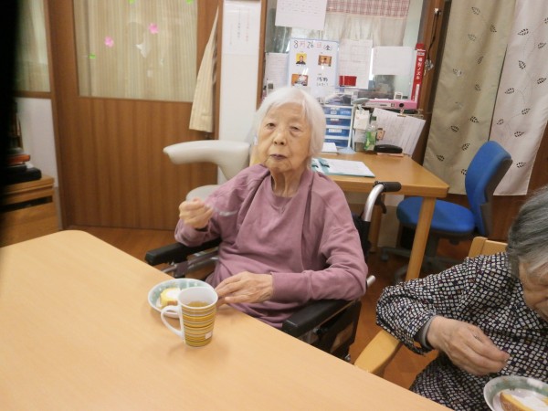 3. 8月のお誕生会2F ケーキと共にみんなでお祝い。