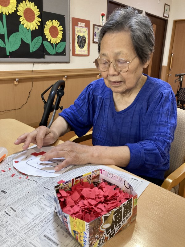 体操やちぎり絵、たこ焼きゲーム(ペットボトルのキャップをひっくり返すという、意外と難しいゲームです笑)などをして過ごされています('ω')