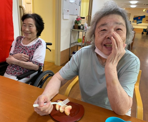 ブログの副賞で頂いた桃を、皆様おいしそうに召し上がっていらっしゃいます♪