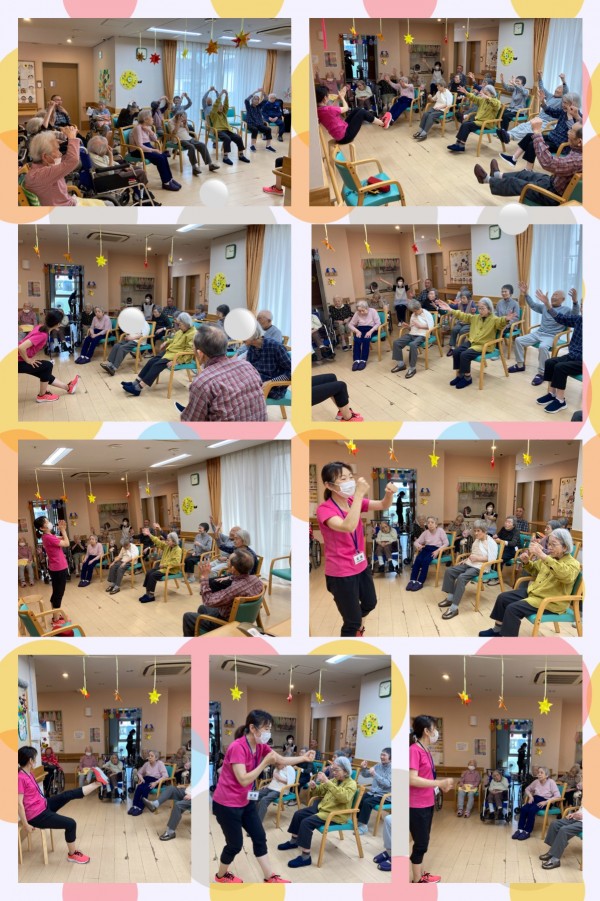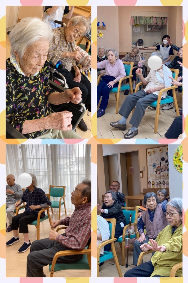 先生をお手本に体操され先生に負けないくらいの元気です!!