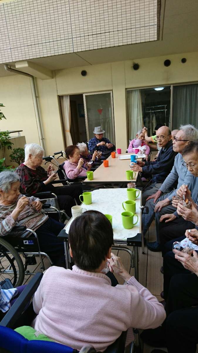 などと、話に花が咲き昔話を楽しまれていらっしゃいましたので、毎日の体操と歌レクの後のおやつに、おいしいおやつをおだしすることにしました。(前から計画してお出しすることになっていたのですが(笑))