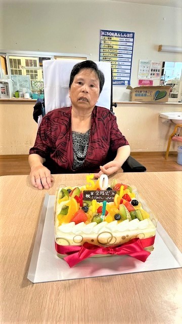 8月8日(月)結婚50年金婚式にご主人様からお祝いのケーキが届きました。