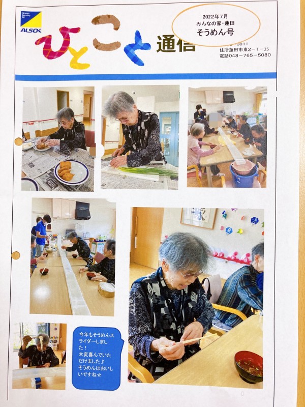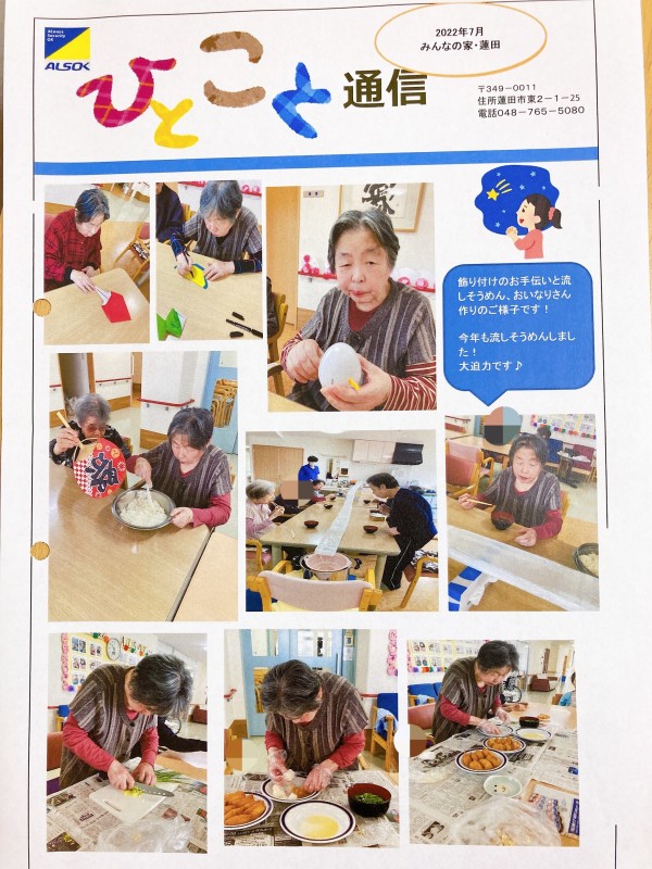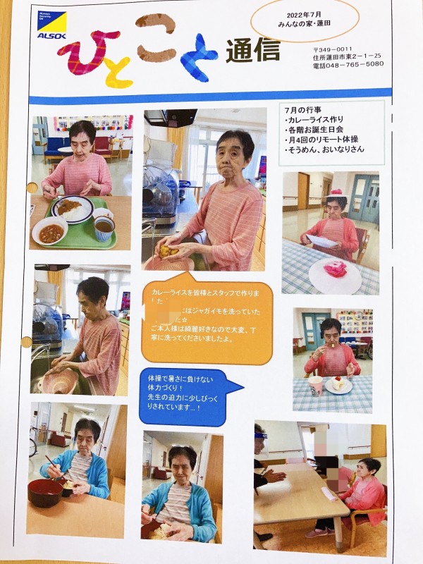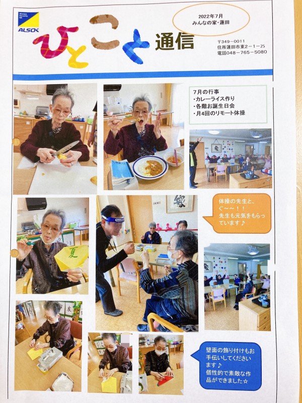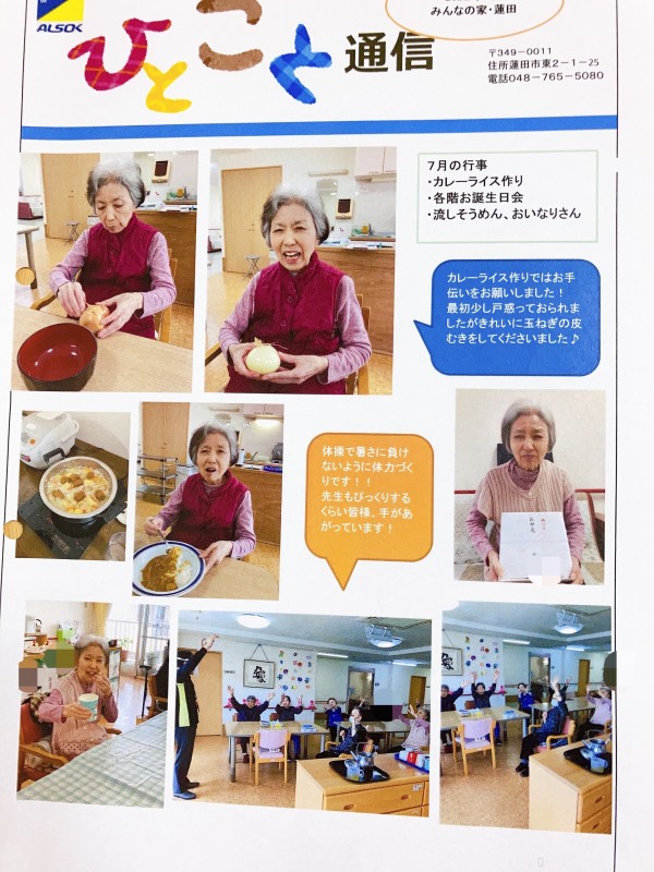 7月のひとこと通信3階編をご紹介させてください♪