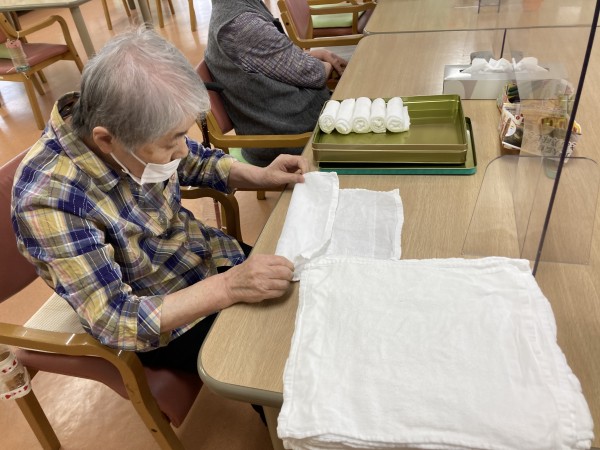 「おしぼり巻くの?なら私やるわよ」と暖かいお声を頂き早速巻いています!