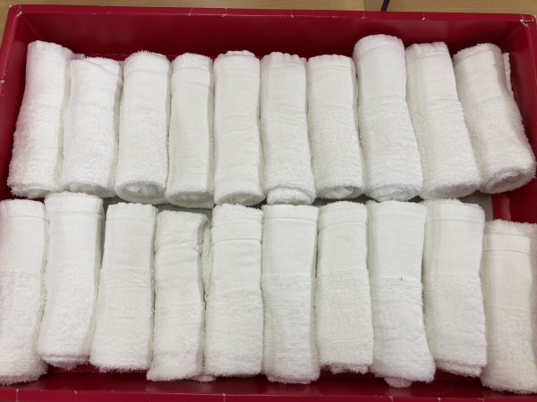完成したおしぼり巻きがこちら!ご協力ありがとうございます"(-""-)"