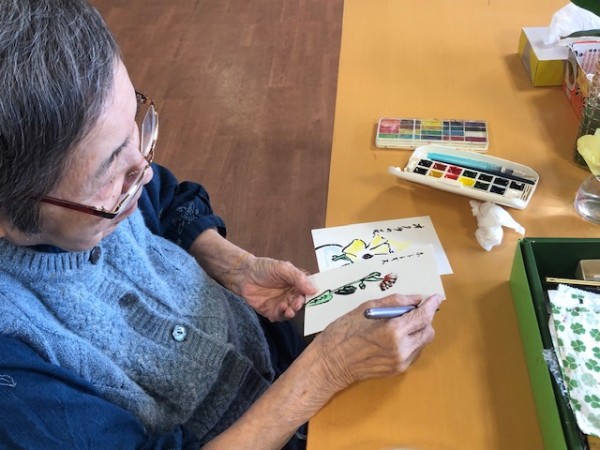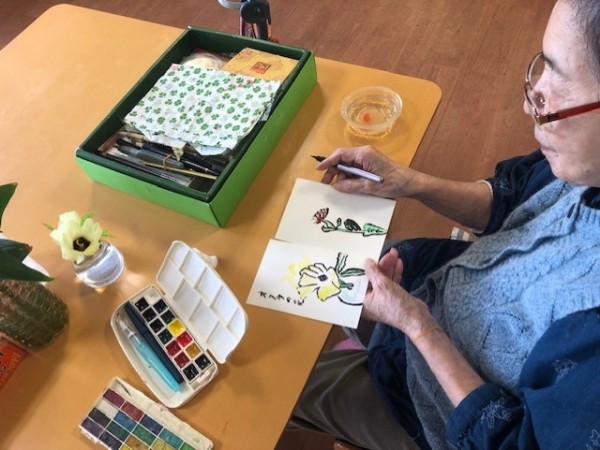 こんなに喜んで絵手紙を描いてくれると、次はどんな花を持ってこようか職員達も楽しみです!
