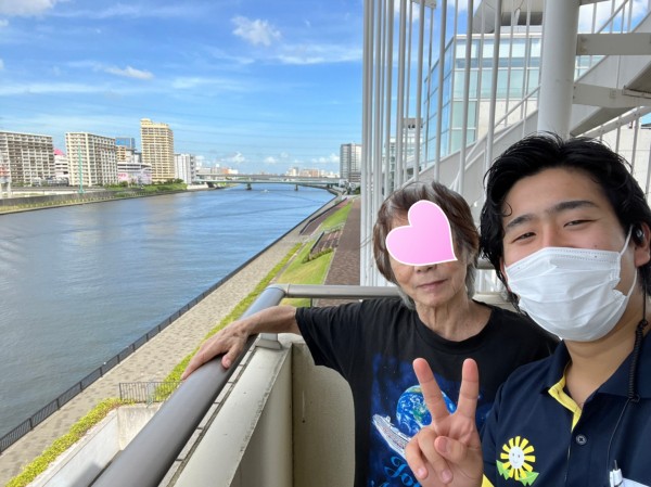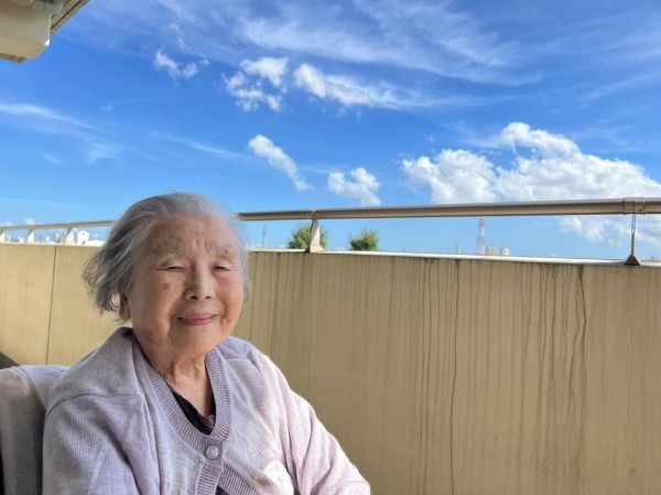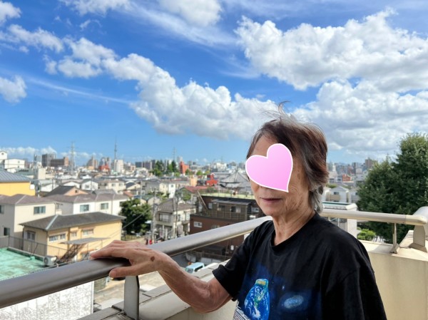 ベランダ散歩、初のご入居者様も気持ち良く歩かれます。