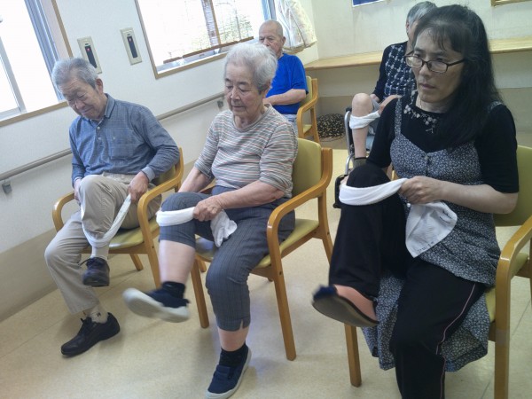 タオルをふんだんに使い全身を使って筋トレを行いました。