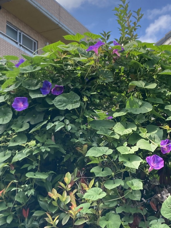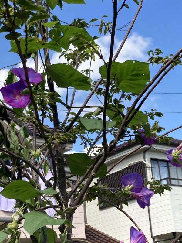 そして、中庭に咲く西洋アサガオが…ものすごい成長を遂げていました。(笑)