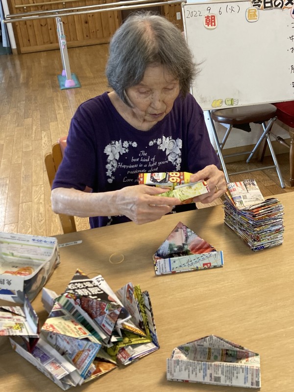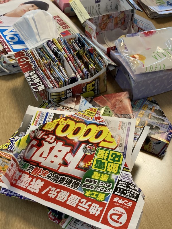そんなホールでは、F様が広告で作るゴミ入れを、無心になって作っていました(笑)