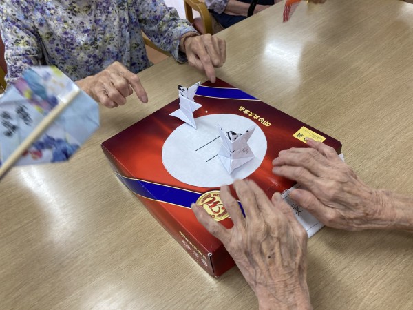 こちらに関してはご利用者様たちのお力を借りて紙相撲の準備を行いました。いやー、素敵な会場に選手たちになりますね~(*’ω’*)