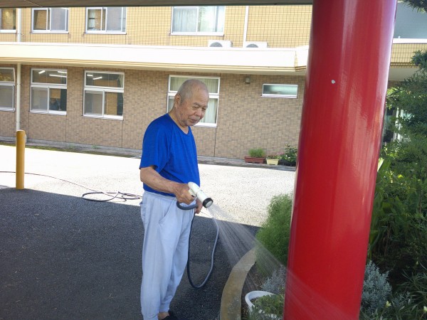 暑い中沢山の野菜やお花に水やりをして下さるご利用者様・・・