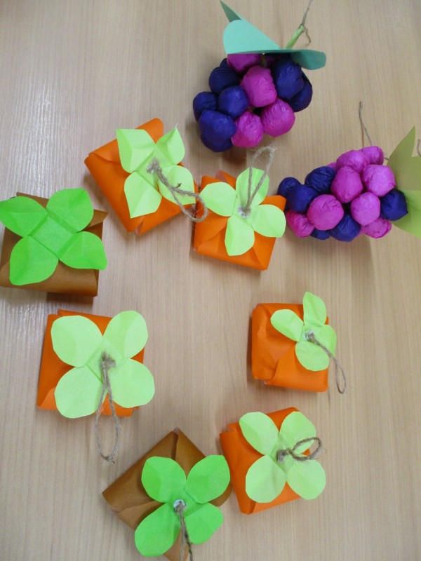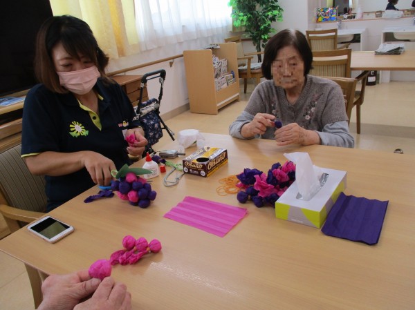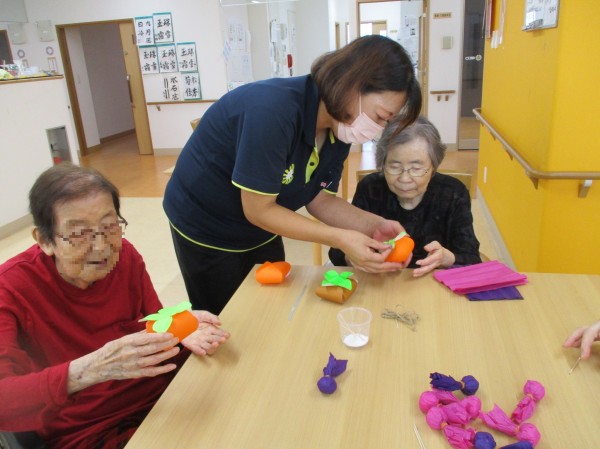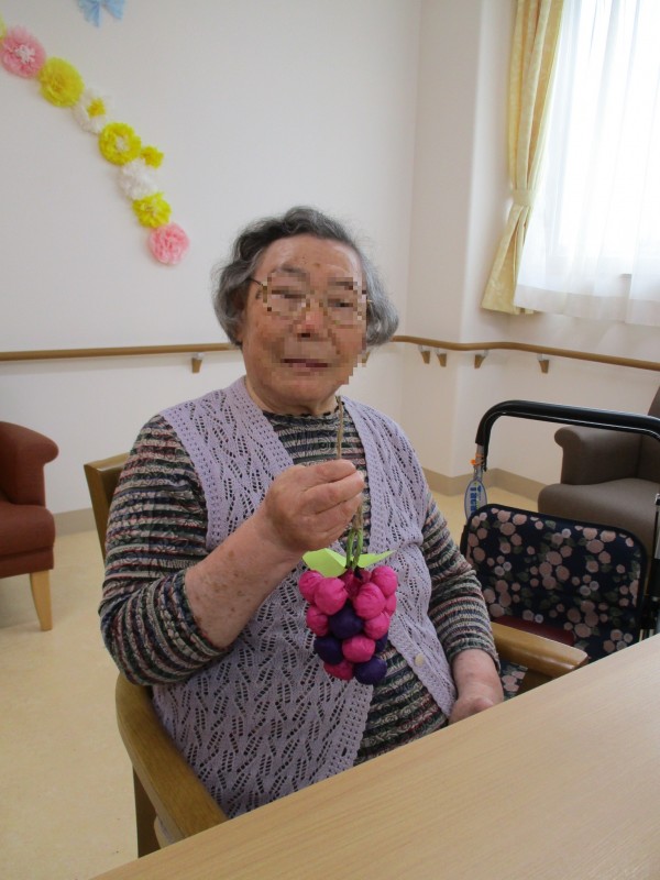 レクリエーションで、柿をブドウを手作りしました。