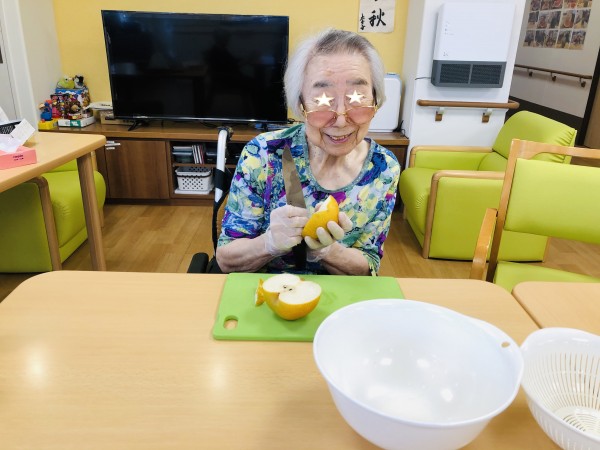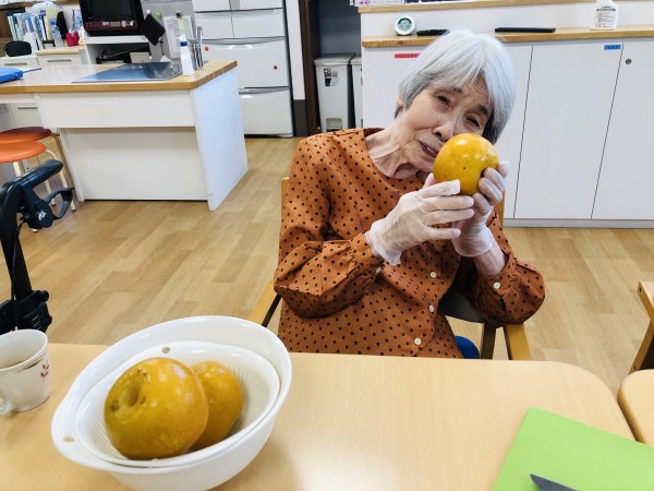 みんなで切ったナシは、とっても芳醇な香りで甘くてサクサクして美味しい!!