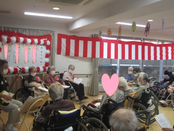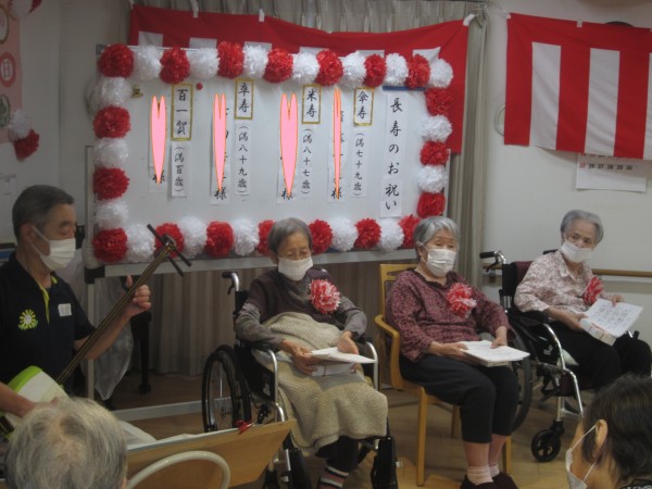ご利用者様の皆様も三味線に合わせて大合唱♪
