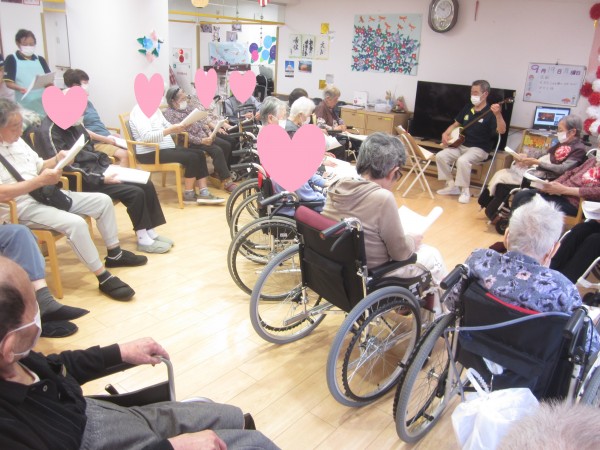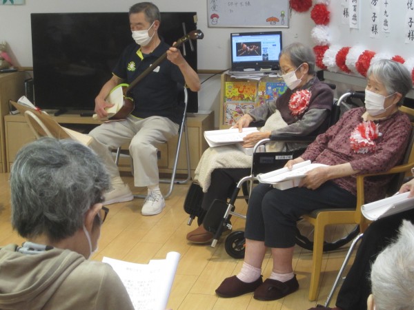 ご利用者様の皆様も三味線に合わせて大合唱♪