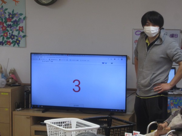 リズミカルな音楽を流してテレビ画面にビンゴゲームの