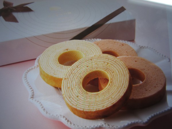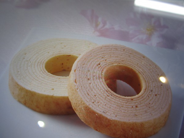 桜花の塩漬け・桜の洋酒を加えた『バウムクーヘンさくら』の詰合せになります。