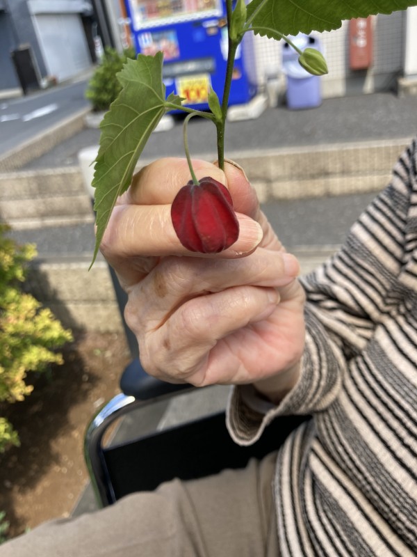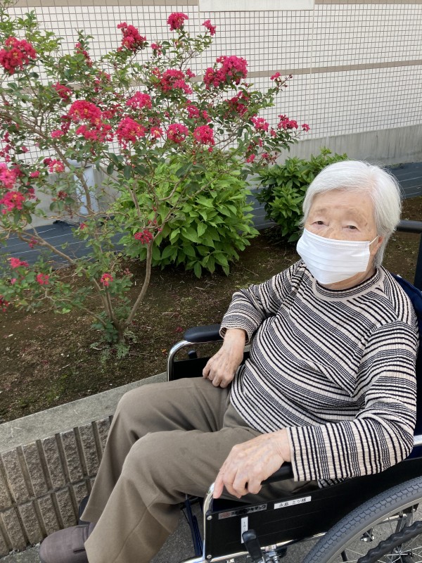 外の気持ち良い風にさらされながら施設周辺の散歩や花壇に植えられたお花(名前はわかりません)