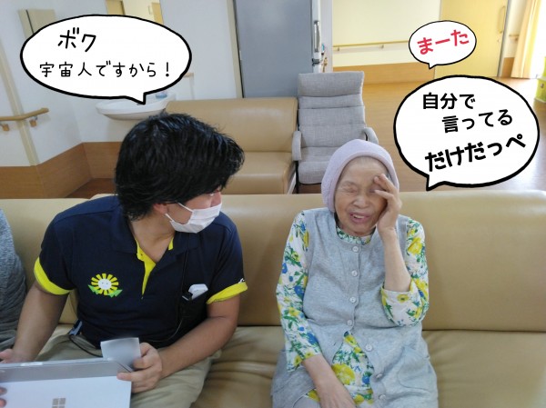 さっき、自分が宇宙人だと言っていた門田ケアスタッフがすかさず