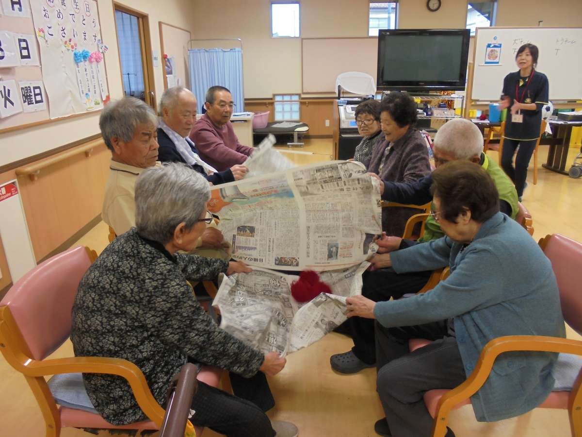 本日のレクリエーションはデイサービスセンター 遊・川越新河岸名物の新聞リレーです!