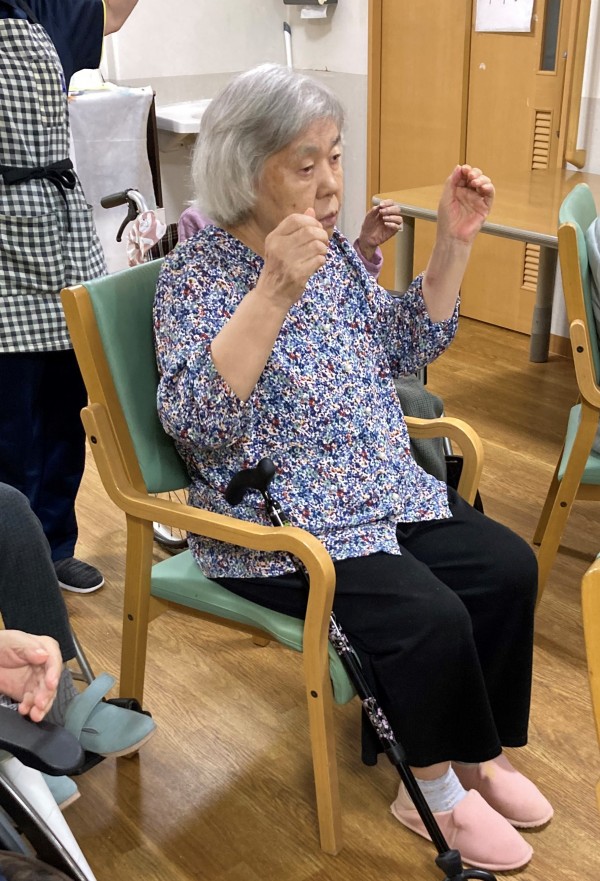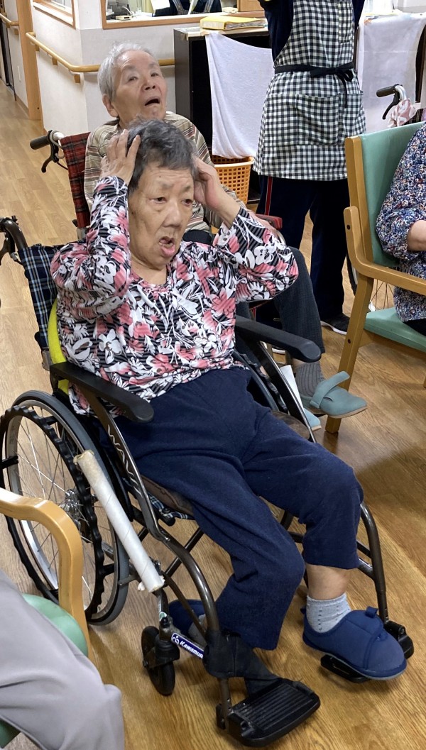 手を頭にのせたり手を上げたりと真剣ながら楽しまれていました(#^.^#)