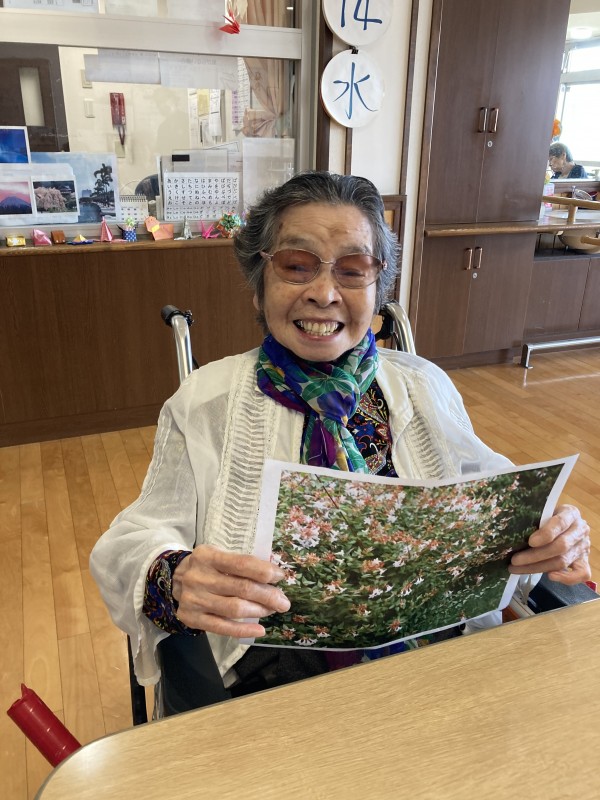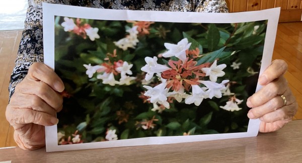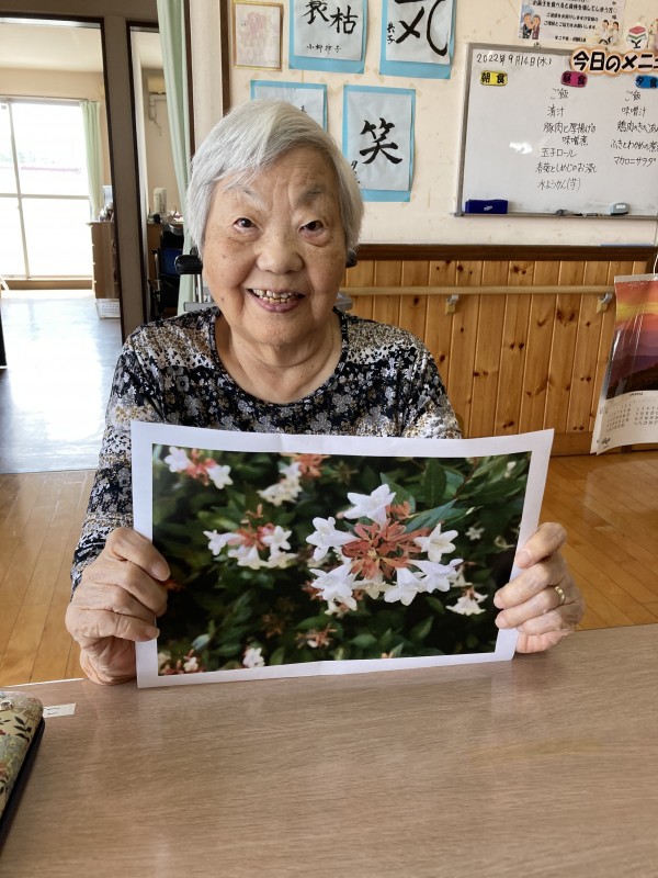 ご家族様より「アベリアの花が咲いたので、本人に教えてあげてください」と。