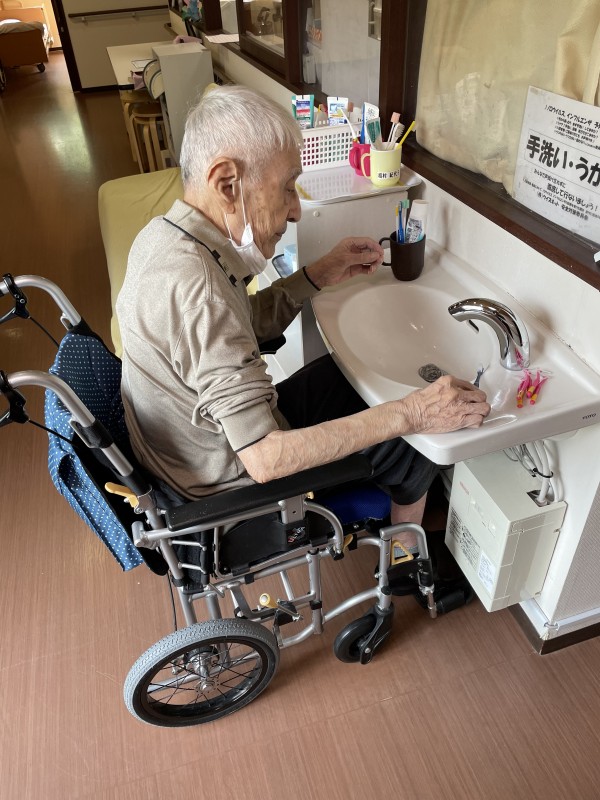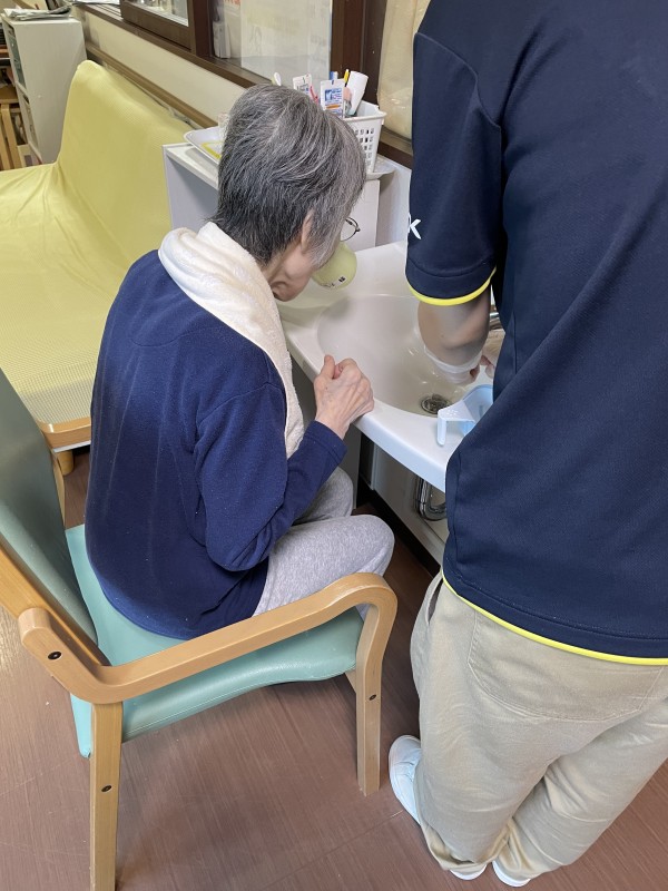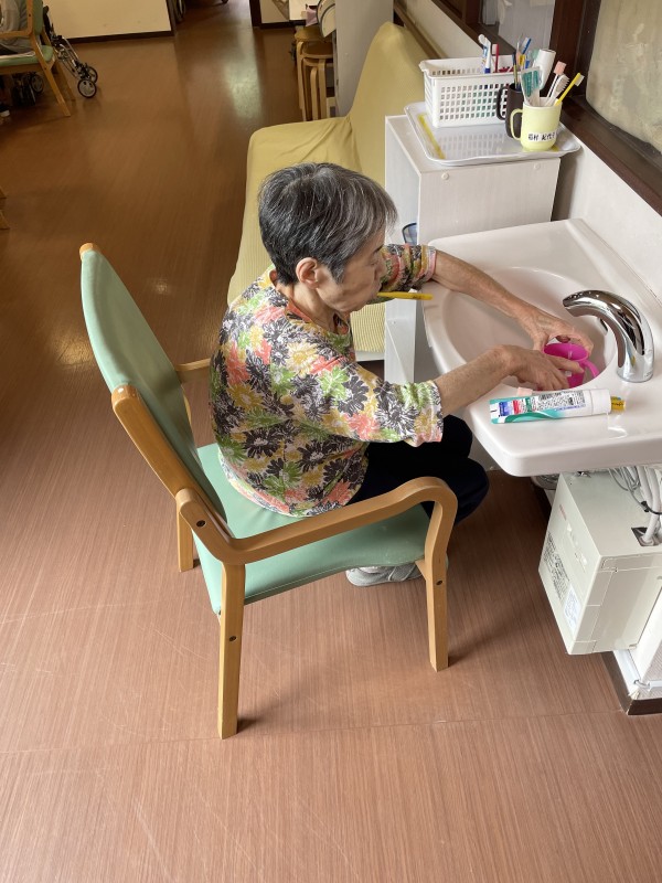 口の中を清潔に保つためにスタッフも見守りをさせて頂いたうえで歯磨きしていただいています。