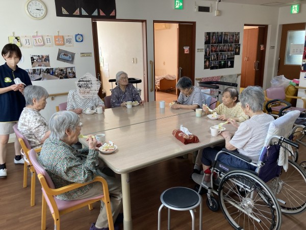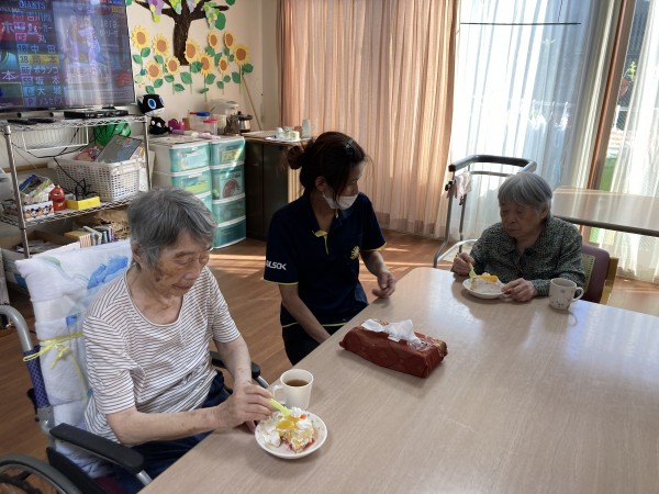 お祝いした後に皆さんとスタッフ手作りケーキを召し上がりました。
