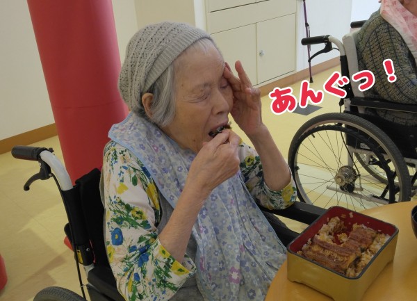 バクッ!と大好物の鰻にかぶりつきます!
