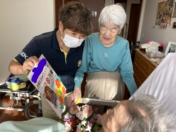 居室対応の利用者様で居室にてささやかではありますが誕生日祝いをしました。