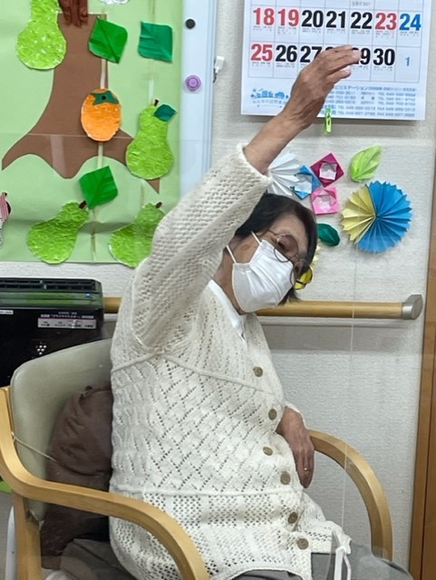 ご帰宅前のいつもの体操!(^^)!今日は台風が来ているのでいつもより念入りに体操をしてしっかり歩けるように・・・と皆様張り切っています。