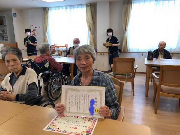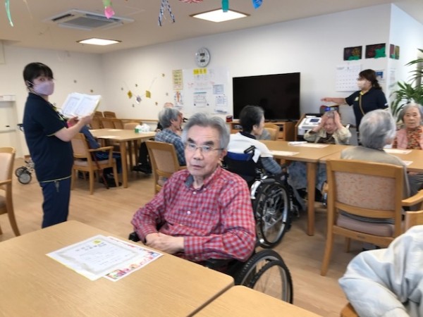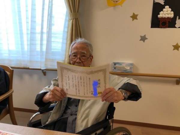 こんにちは(✿✪‿✪。)ノコンチャ♡アミカの郷松戸です。今日は敬老の日。アミカの郷松戸では「敬老会」を開催しました。古希・米寿・卒寿などの方から順に「感謝状」を送りました。当施設で最高齢者は男性、女性共に96歳です。お二人にはくす玉を割っていただきこのまま100歳まで健康で!とお祝いの言葉と拍手!!