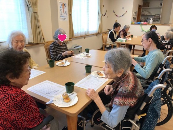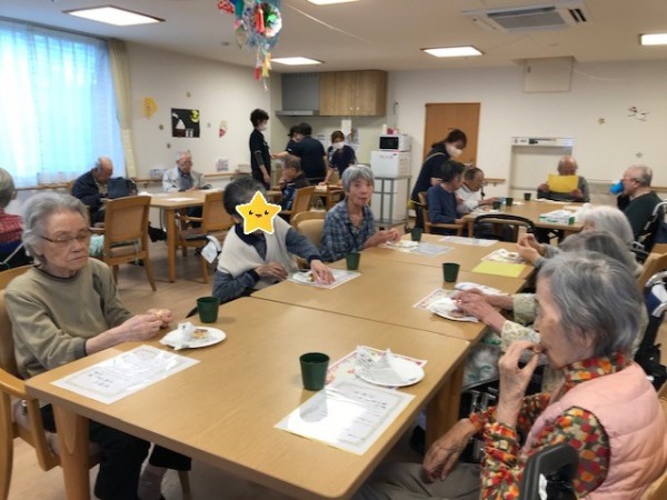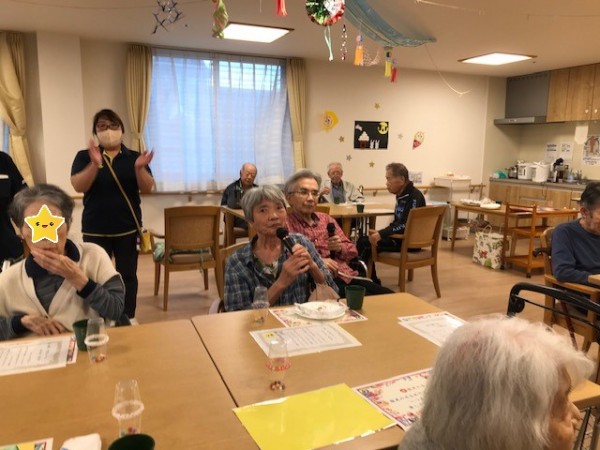 温かいお茶とお菓子を召し上がり、恒例の「カラオケ」タイムです。