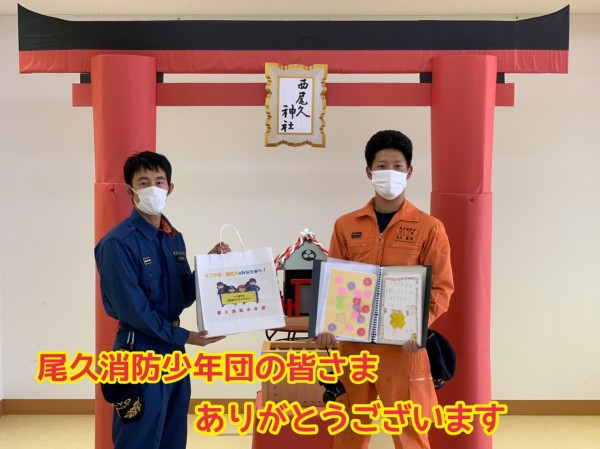 尾久消防少年団が訪問出来なくなってから、敬老の日に毎年いただくお手紙を届けてくださいました。