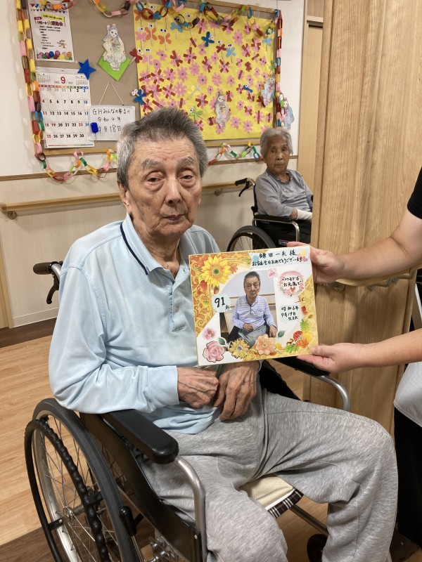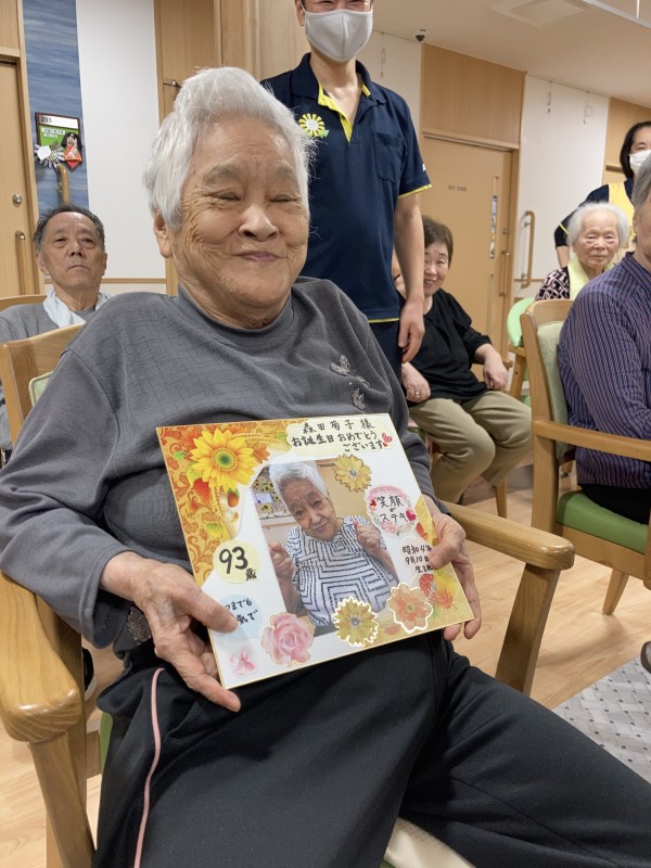 お誕生日会ではhappy birthdayの歌を歌い色紙をプレゼント❣️普段は見られない素敵な笑顔をしてくださいました!職員のやった!(๑˃̵ᴗ˂̵)という心の声が聞こえてきました♪