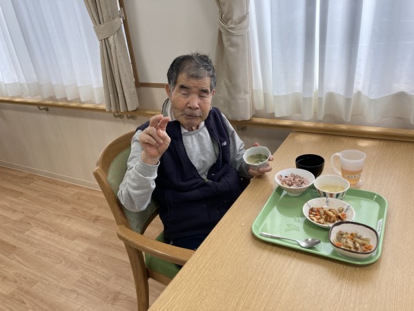 お赤飯美味しい〜(^。^)!皆んなで食べるからもっと美味しいんだよね〜♪笑顔で召し上がっていらっしゃいました。 (^∇^)