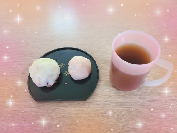 今回は、敬老の日なので手作りの紅白まんじゅうを召し上がって頂きました。