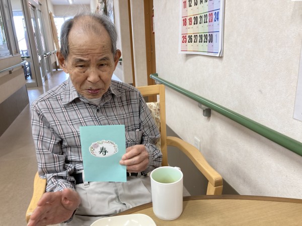 先日、敬老を祝う会を行いました。今年は、二名の方の米寿をお祝い致しました。