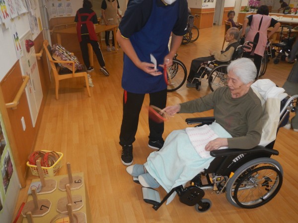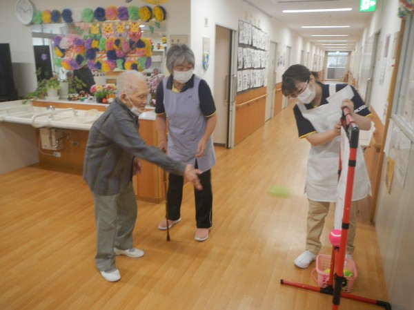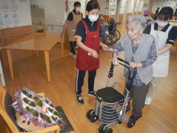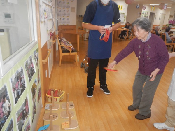 2階でも男性陣の優勢ぶりは変わりませんが、みなさん真剣に的目掛けて遠投!?されていました。