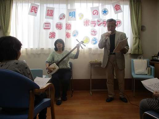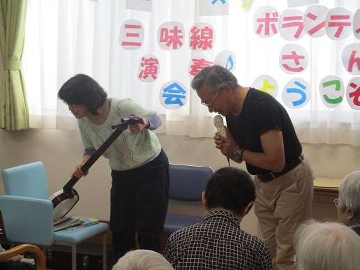 オーナー友人が、歌や演奏を行い、東京音頭等リズムに合わせて入居者様は楽しんでいました。
