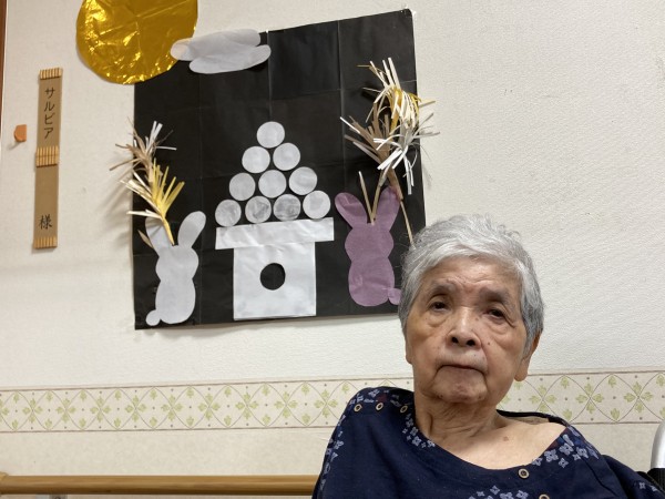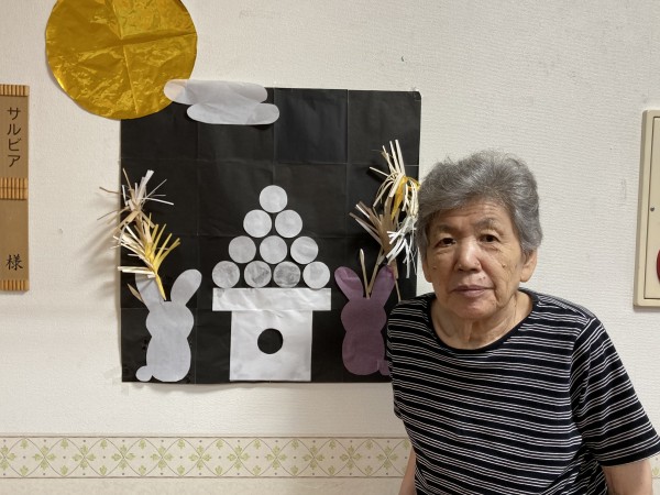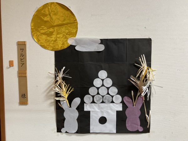 利用者様には、大きな用紙にお月様やお団子を貼り付けてもらいました。