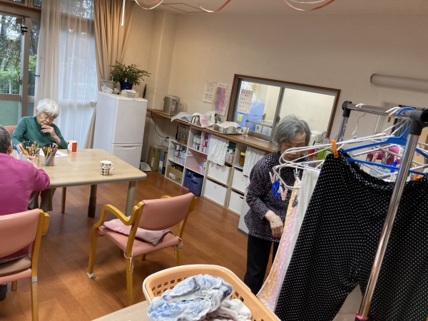 日々できる事を手伝ってもらい「脳を」使い、持てる力を損なわないように…支援し、時々補助をしながら職員は見守っています。