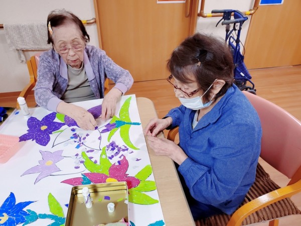 グループホームみんなの家・川崎久地では、一年を通して季節のお花のちぎり絵や制作物を作成しています。