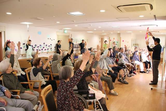 5月11日 金曜日 介護付有料老人ホームすこや家・西東京におきまして、脳と脚の簡単トレーニング”NOAエクササイズ”が開催されました。このところ、気温の変動が激しく、少し肌寒い陽気でしたが、会場はいつものように熱気と笑いにあふれていました。