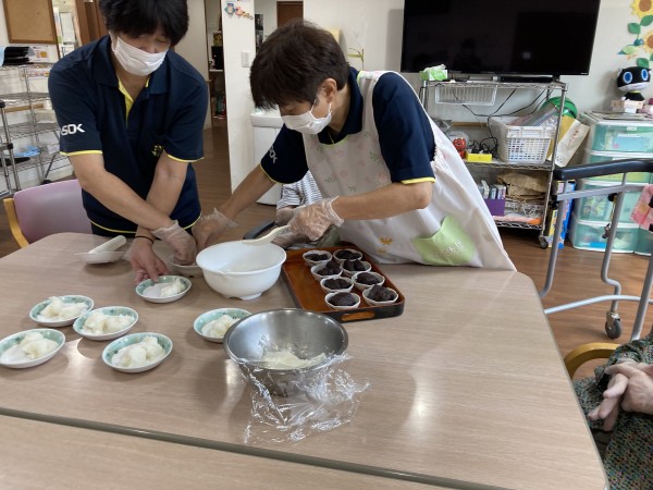 今回は1階おやつ作りで「おはぎ」を作りました(#^.^#)