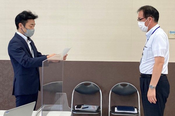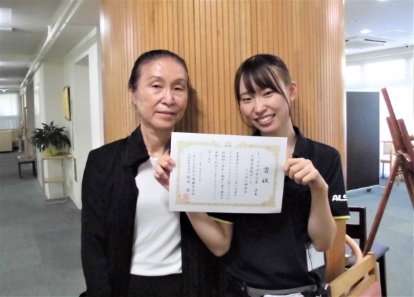 授与式には当施設のエリアマネージャーが出席し、後日施設長とブログ担当で写真を撮りました。